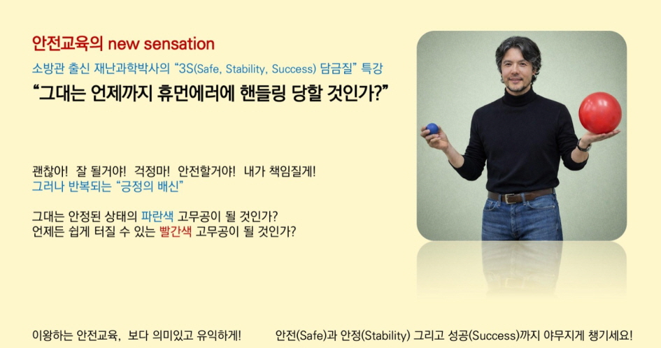 안전(Safe)과 안정(Stability) 그리고 성공(Success)까지 야무지게 챙기세요!해시태그 : #하충식 연구소장 #AGI재난과학연구소 #휴먼에러 #성공과 실패 #안전과 안정 #심리와 법칙